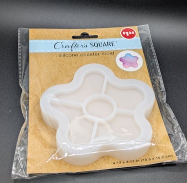 Acquire the supplies first. Step into your nearest Dollar Tree (no need to break the bank for your first project!), and waltz on over to the crafting isle. Dollar Tree actually has all of the items you need for this project! Look for Crafters Square branded items (image below right). Once you gather all of the supplies, find a well ventilated work area, and protect the surface you will work on. I use silicone mats , but if you do not have any you can cover your work surface with wax paper. Put your gloves and mask on! Dollar Tree sells 1oz bottles of both Part A and B resin , so no measuring is needed, just pour 1 bottle of each into a disposable cup and mix slowly (so to minimize bubbles) with a wooden popsicle stick until well blended. Pour enough resin to just slightly layer the bottom of the mold, place the dried flowers , then pour just enough to cover the flowers. Let sit for 24 hrs to cure. After 24 hours , you should be able to release the resin from the mold. The resin should be sturdy , not bendy! Now admire your creation! This project is as easy as it gets! As you gain experience you can experiment with more mediums like glitter, chrome powder, alcohol ink, beads, etc. The options are endless!